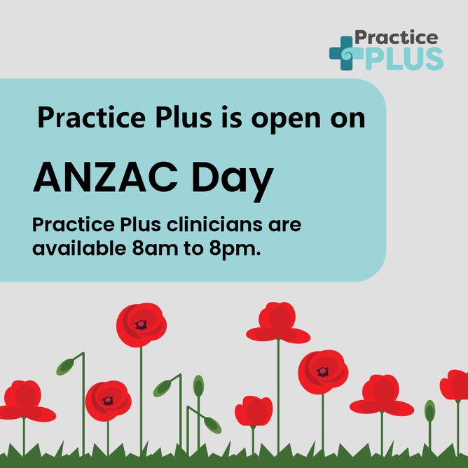 If your concern is not an emergency, and you don't need to see a clinician in person, then Practice Plus is a great option: same-day virtual appointments are available with NZ-based clinicians from the comfort of your own home. Practice Plus is available 8AM to 8PM on ANZAC Day.