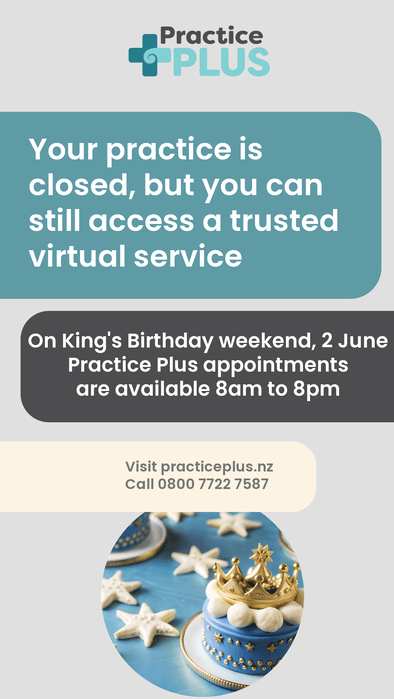 Practice Plus will still be available for same-day virtual appointments with GPs, or see our After Hours page for other options for advice and/or care while we're closed.